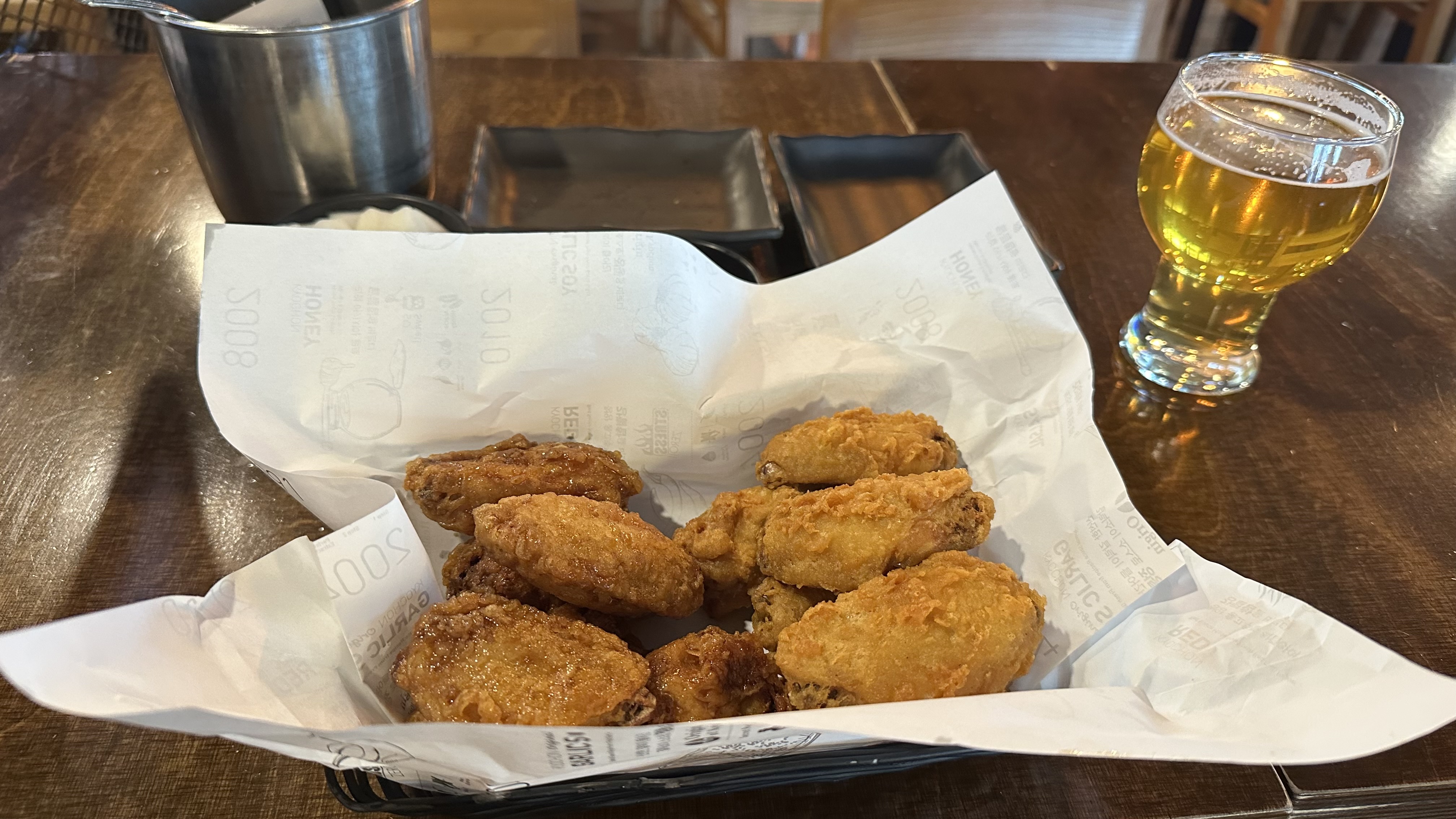 とりあえず、近くのキョチョンチキンで早めの昼食です。チキンはビールと嗜むものらしいので、昼からビール。気分いいです。チキン良いですね。なんか上品っていうか、チェーン店なのに質が高いです。油をしっかりきってあってくどくないのに、すごくクリスピーです。めっちゃ手間がかかっているのを感じます。このレベルじゃないと生き残れないとなると韓国における揚げ鶏肉にかける情熱はちょっと怖いかもしれないです。とにかく日本の鶏の揚げ物とは品質の次元が違います。この店、提供まで30分くらいかかりますしね。ちなみに抜群に美味いってわけではないです。唐揚げの方が美味いです。
