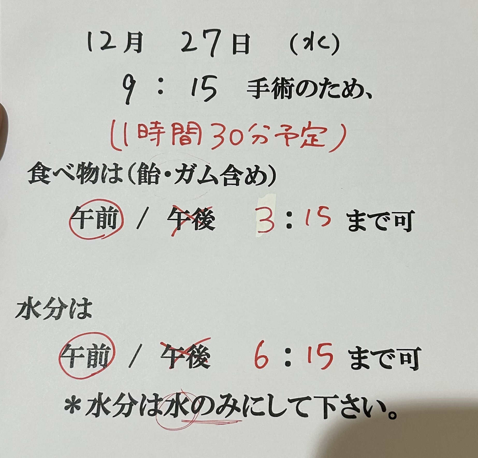 朝6時までに起きないと水すら飲めません。ストイックな手術で嬉しいですね。