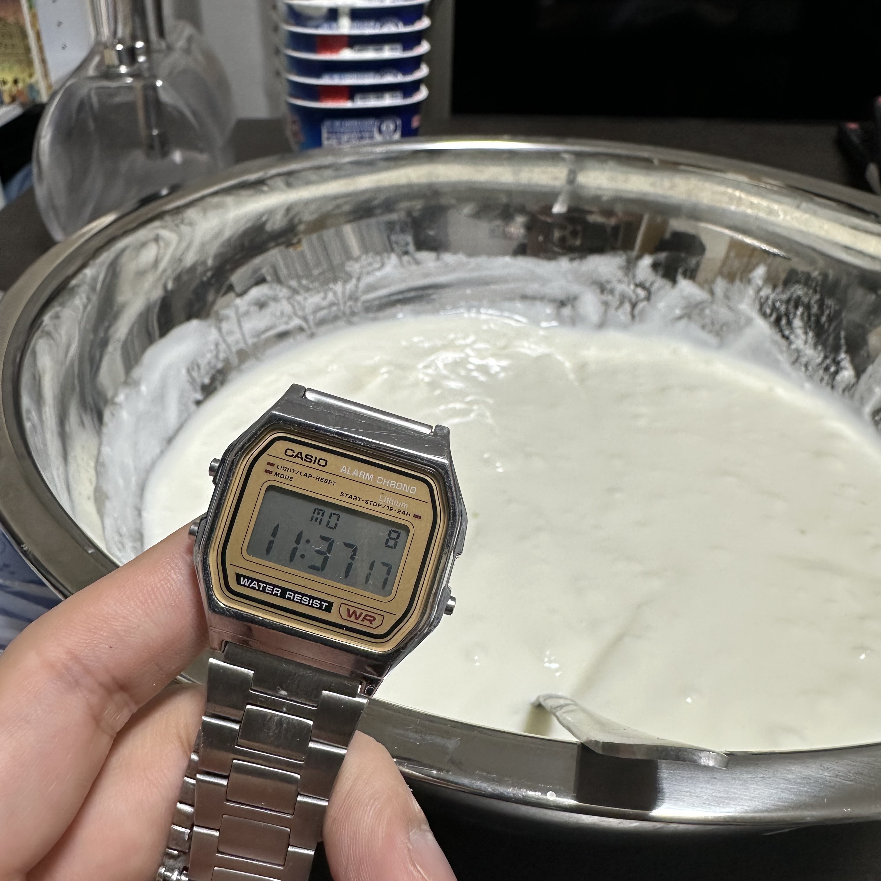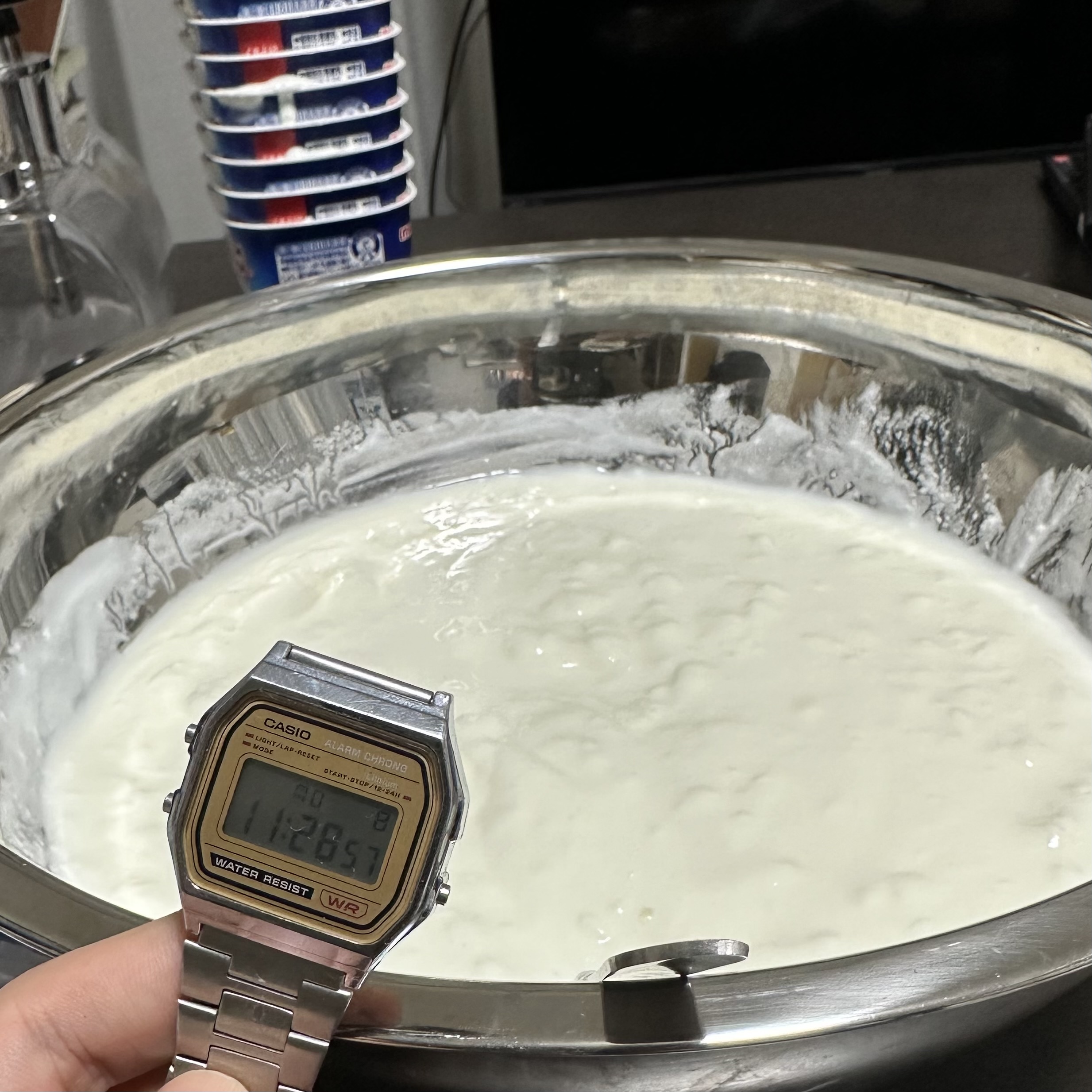 40分経ちました。いよいよ佳境です。しかし、ボウルに全部移してしまったのは失敗でした。進度があんまり把握できません。ブログ映え的にも進度が定量的に示せた方がいいので、やっぱり移さないべきでした。反省です。