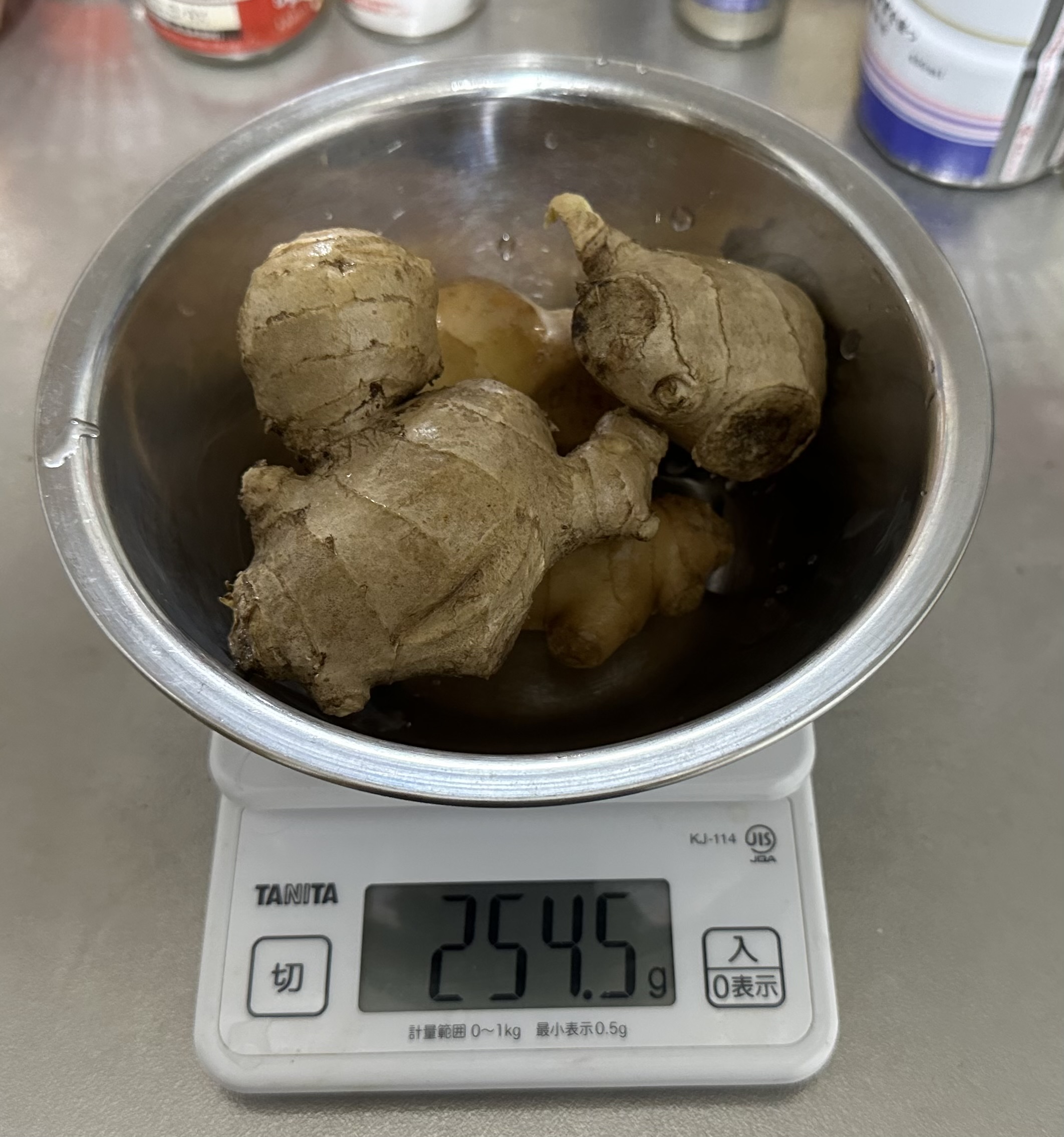 今回は250gの生姜を用意しました。参考までにチューブ生姜1本が40gです。