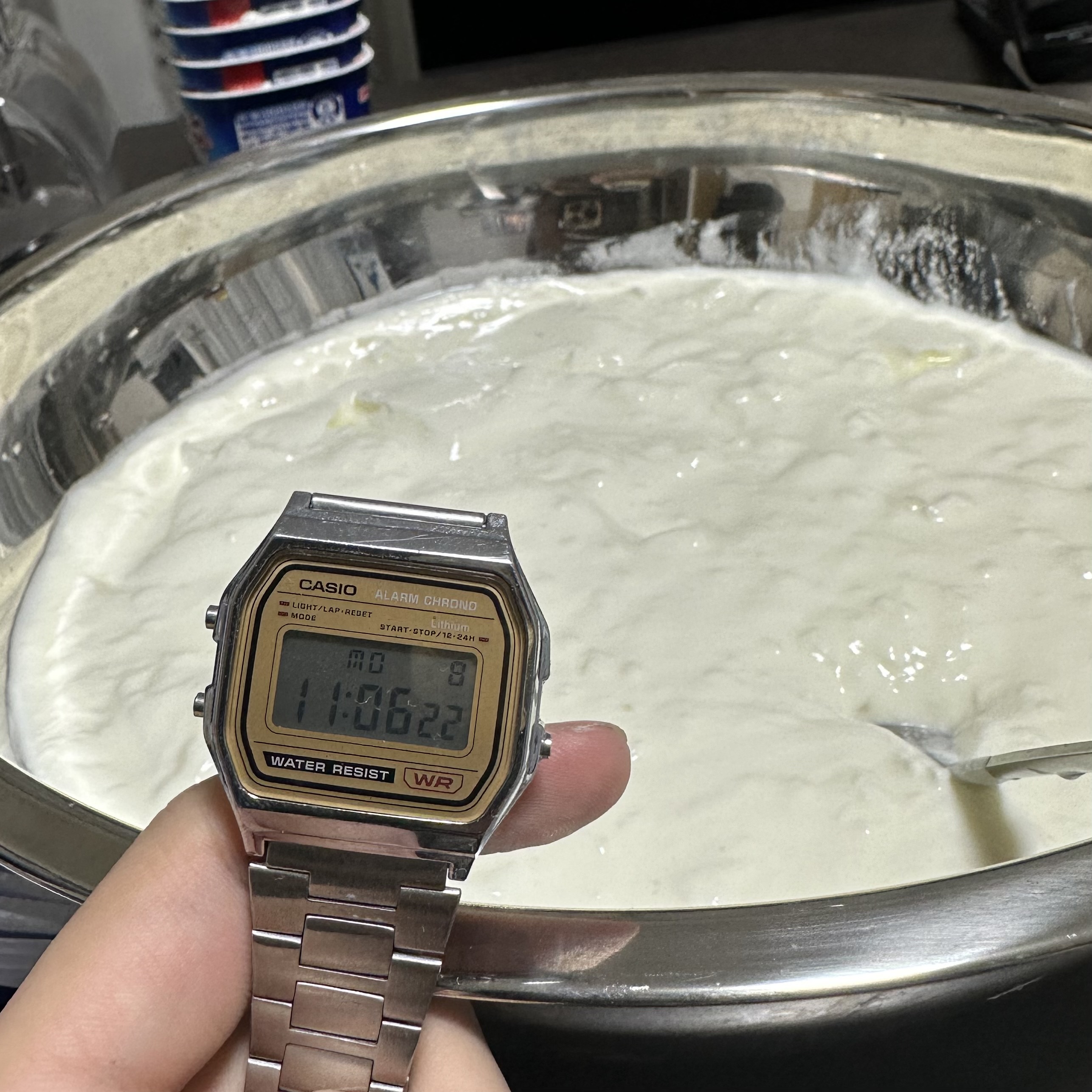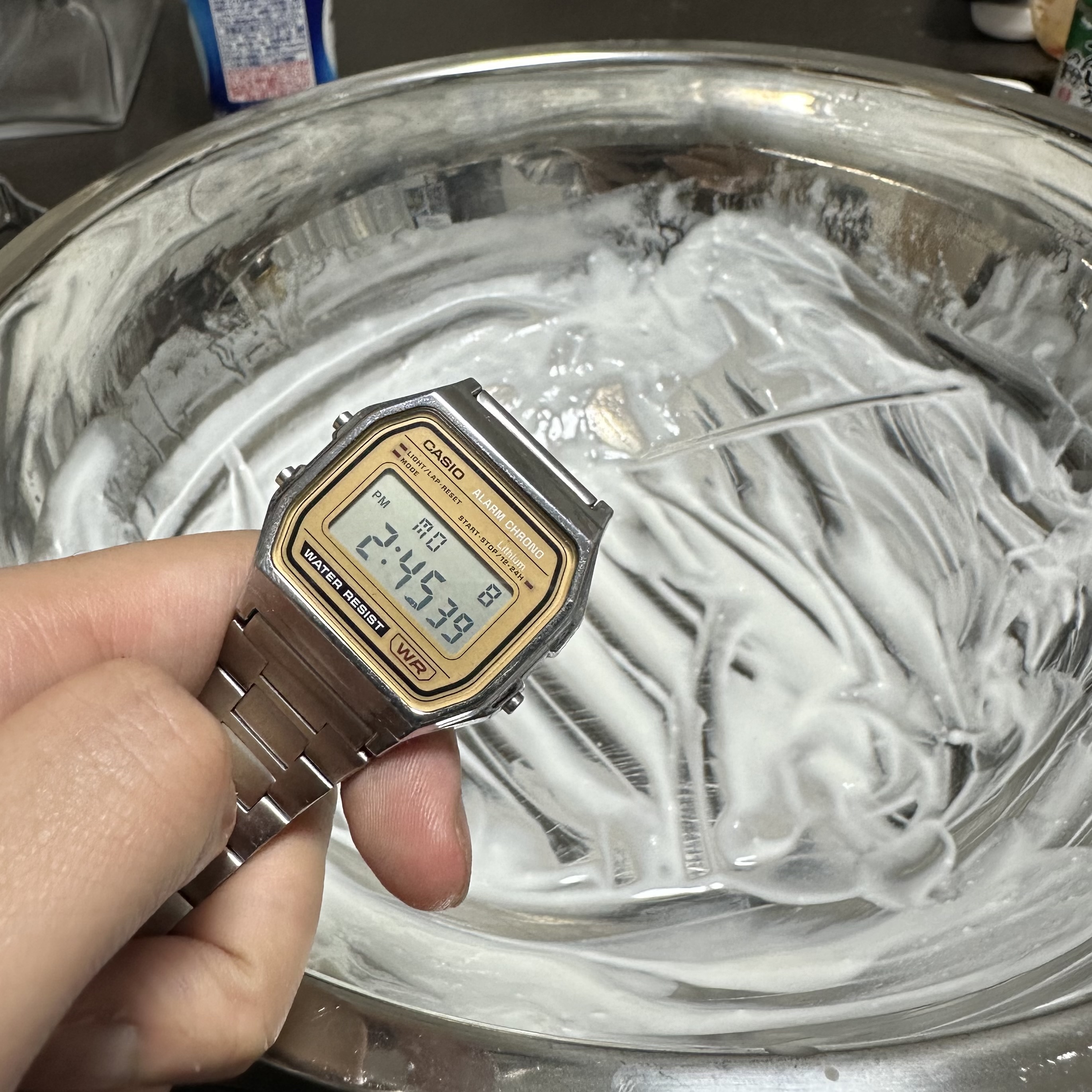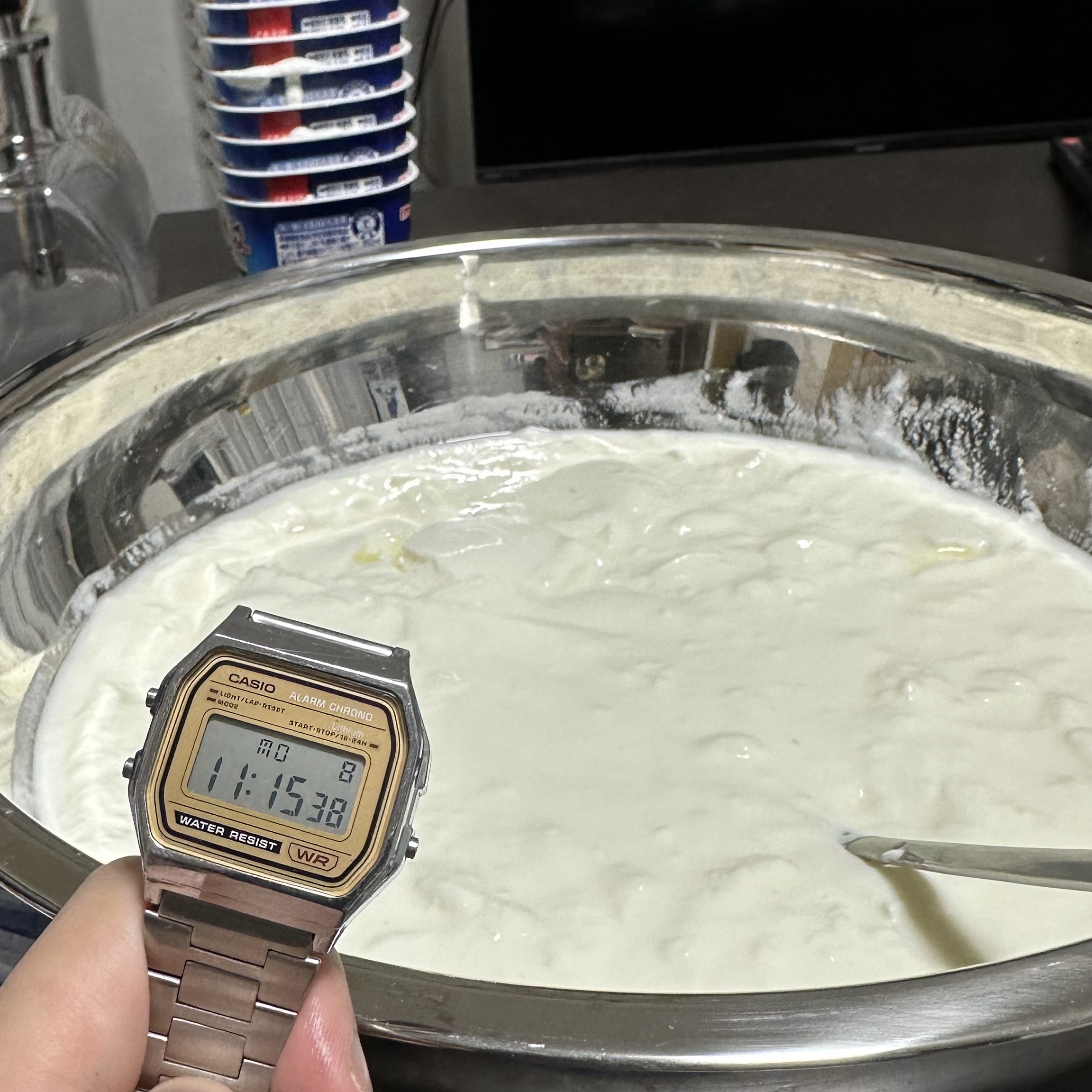 40分経ちました。いよいよ佳境です。しかし、ボウルに全部移してしまったのは失敗でした。進度があんまり把握できません。ブログ映え的にも進度が定量的に示せた方がいいので、やっぱり移さないべきでした。反省です。