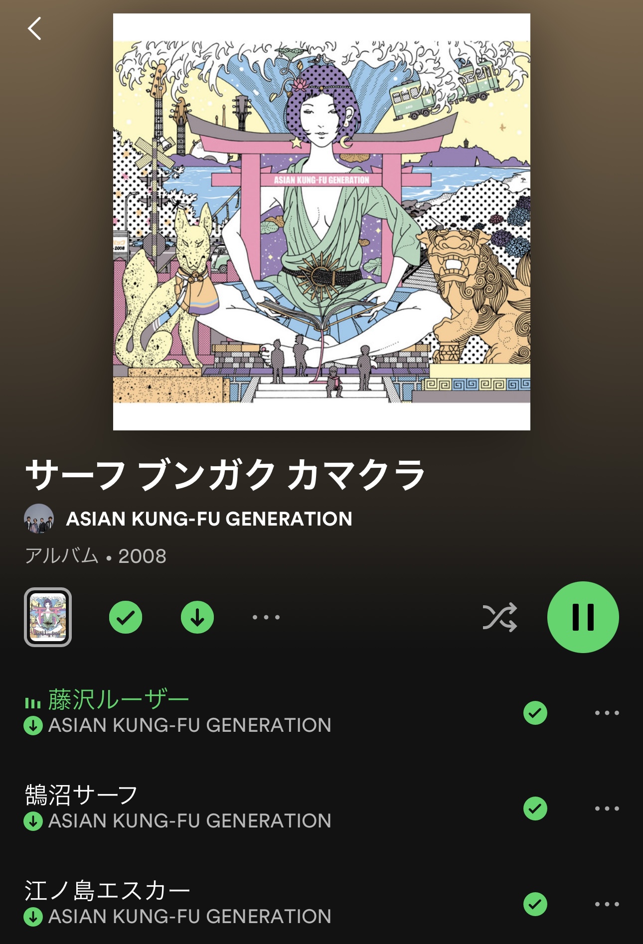 聴きながら乗りました!ずっとやりたいと思っていたので、楽しかったです。大満足でした。また、このアルバムの長さと藤沢駅から鎌倉駅までの走行時間が同じという都市伝説があり、こちらの真偽も気になっていたのですが、全然ウソでした!10分くらい走行時間の方が長かったです!